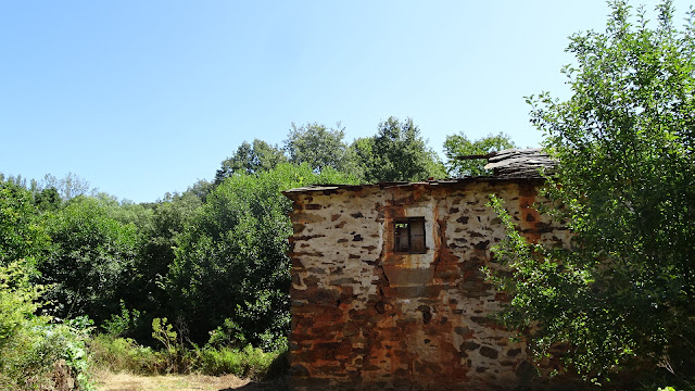 Este camino nos condujo hasta una carretera que cruzamos y seguimos por el camino que encontramos de frente. Tras unos cientos de metros llegamos a Chaguaceda, un bonito pueblo abandonado donde ya sólo quedan restos de casas medio en ruinas. El lugar tiene mucho encanto.