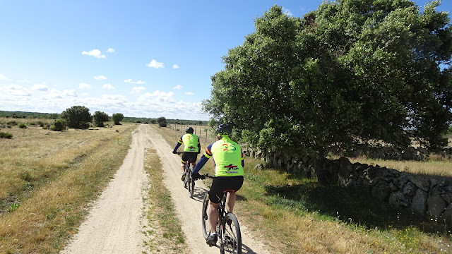 El camino, en un principio, no era una pista pero se rodaba bien por él. Tuvimos que realizar varios cambios de dirección y frente a nosotros, prácticamente en todo momento, tuvimos tierras sin cultivar, escasos árboles y las típicas paredes sayaguesas cercando las propiedades.