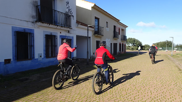 Finalmente, entramos en el pueblo y, como era pronto, antes de cambiarnos y colocar las bicis en los coches, buscamos un bar donde tomar algo. Lo encontramos y fue un placer beber una cerveza a la puerta del mismo, al sol y con la excelente, y anormal, temperatura existente para un 4 de diciembre.